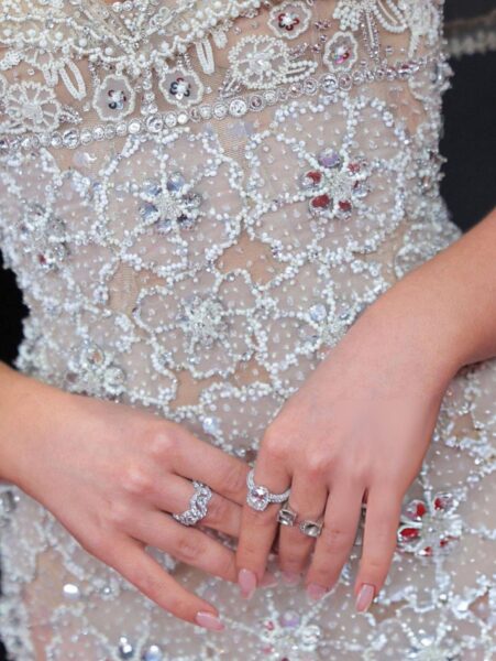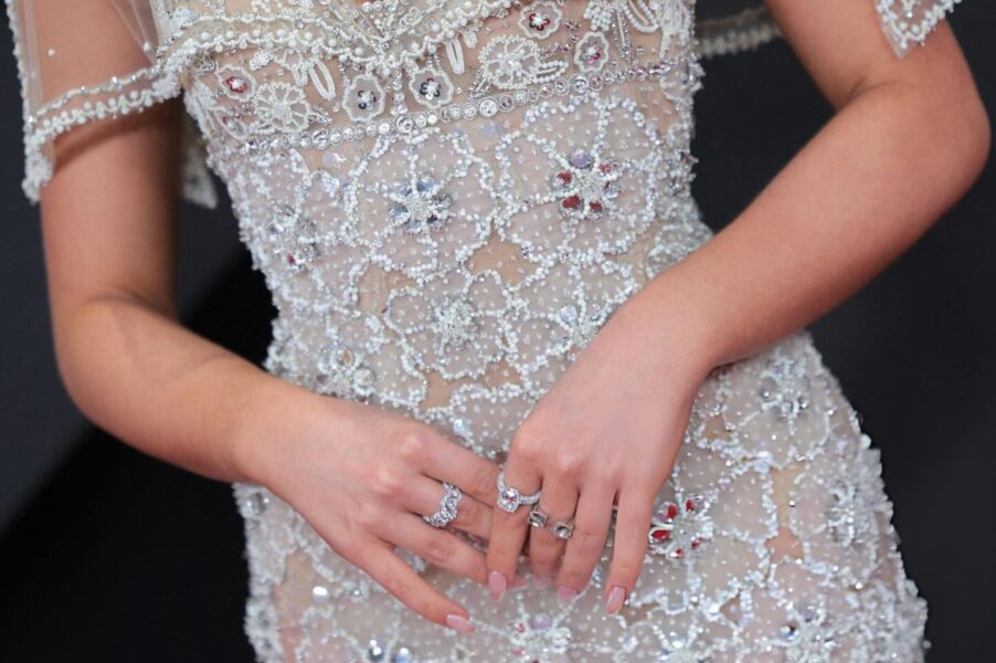 Minimalistyczna biżuteria i stonowany makijaż dopełniały looku, nie konkurując z suknią, lecz ją wzmacniając. To była stylizacja, która nie próbowała opowiedzieć historii za artystkę, a jedynie stworzyć dla niej odpowiednią ramę.