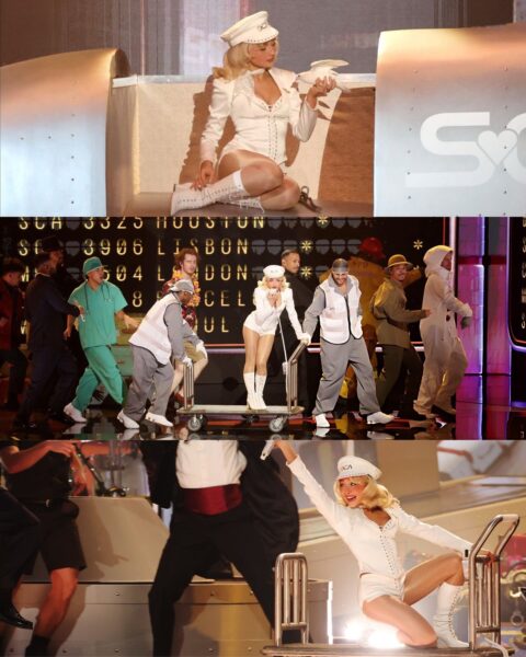 Każdy gest był przemyślany, kontakt z kamerą naturalny, a wokal prowadzony z pełną kontrolą. To nie był występ, który miał przytłoczyć rozmachem — to był występ, który zatrzymywał uwagę spokojem i pewnością siebie. W kontekście całego wieczoru był to bardzo czytelny komunikat: Sabrina nie musi udowadniać swojej pozycji — ona już ją ma.