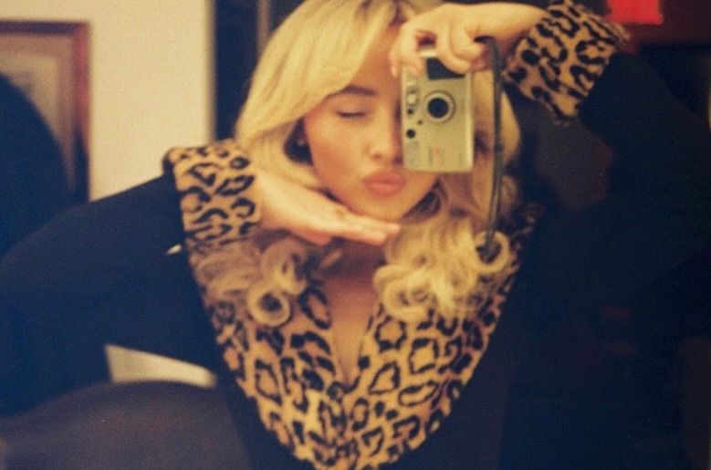 Sabrina postawiła na miękkie, sprężyste blond loki z charakterystyczną grzywką, które nadają jej wizerunkowi lekkości i klasycznej elegancji. Fryzura subtelnie nawiązuje do ikon kina lat 50. i 60., jednocześnie zachowując nowoczesny twist.