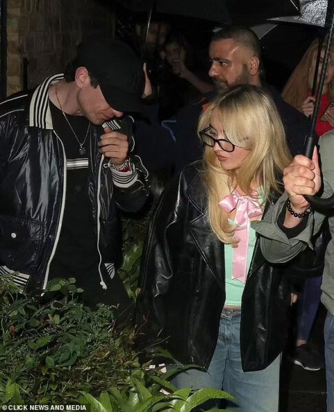 Dopełnieniem są cienkie okulary w stylu vintage oraz mała, jasnoróżowa torebka, które spinają kolorystycznie całość i wzmacniają wrażenie kontrolowanej lekkości. Stylizacja balansuje między dziewczęcością a miejskim chłodem — dokładnie tam, gdzie jej prywatny styl ostatnio czuje się najlepiej.