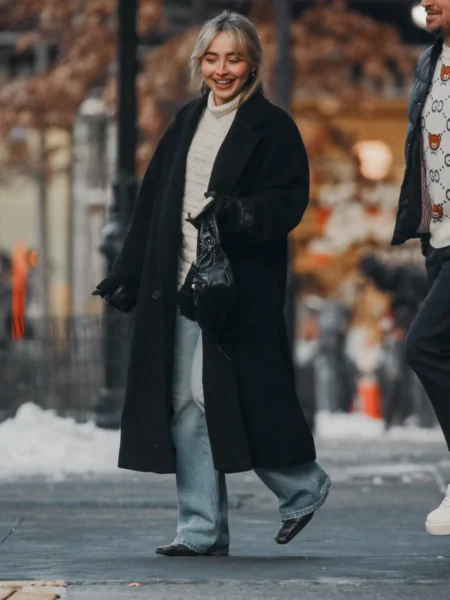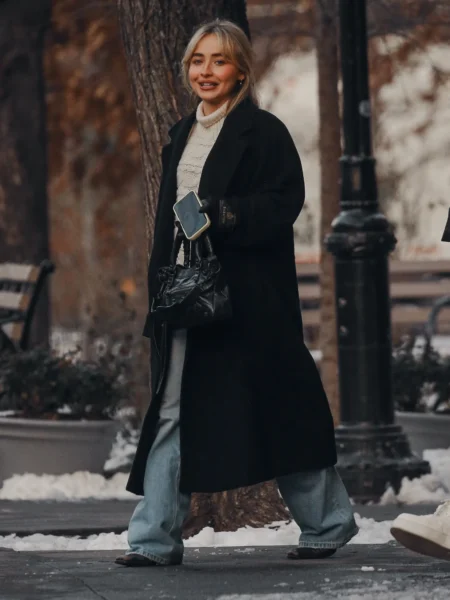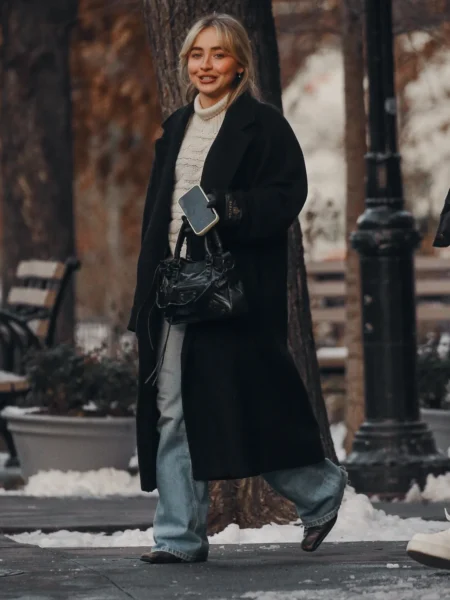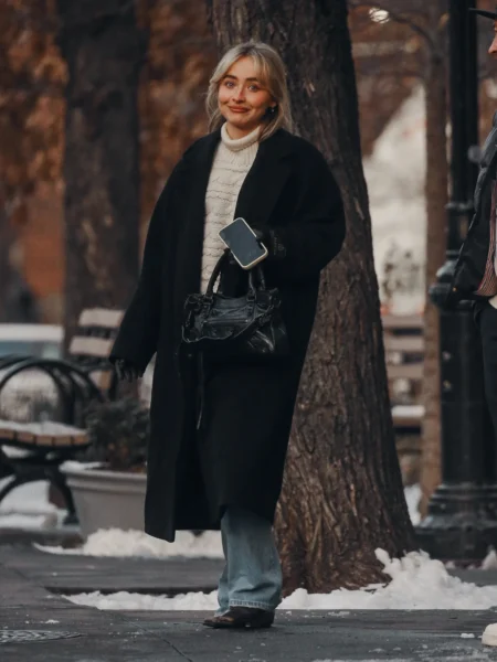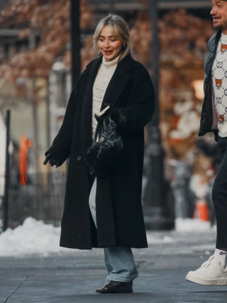 Stylizacja artystki była utrzymana w spokojnym, zimowym klimacie — długi ciemny płaszcz, jasny golf, jeansy oraz minimalistyczne dodatki. Całość podkreślała naturalność i swobodę, daleką od scenicznych czy czerwono-dywanowych kreacji, z jakich Sabrina znana jest podczas oficjalnych wystąpień.