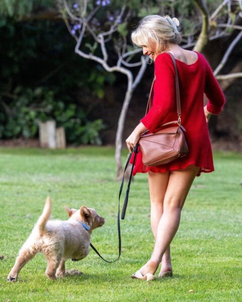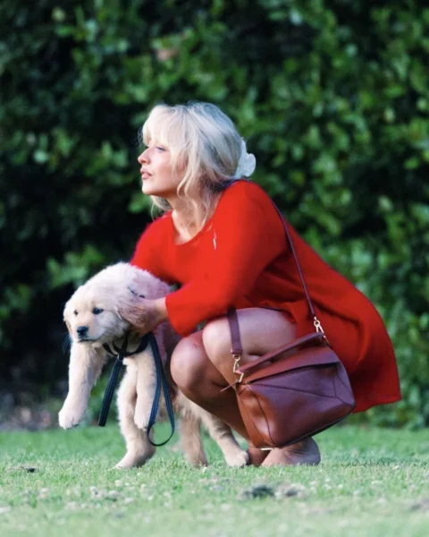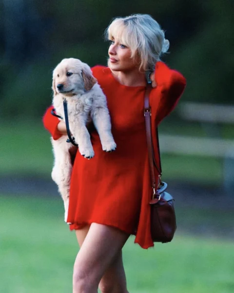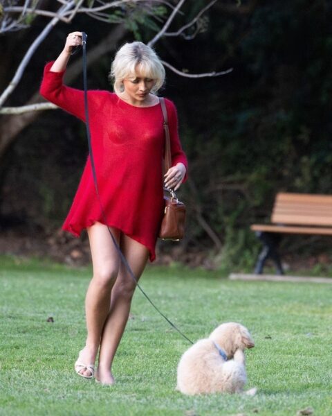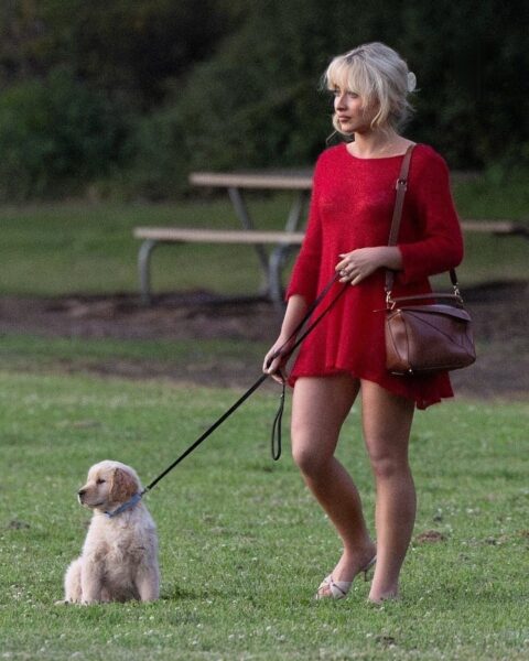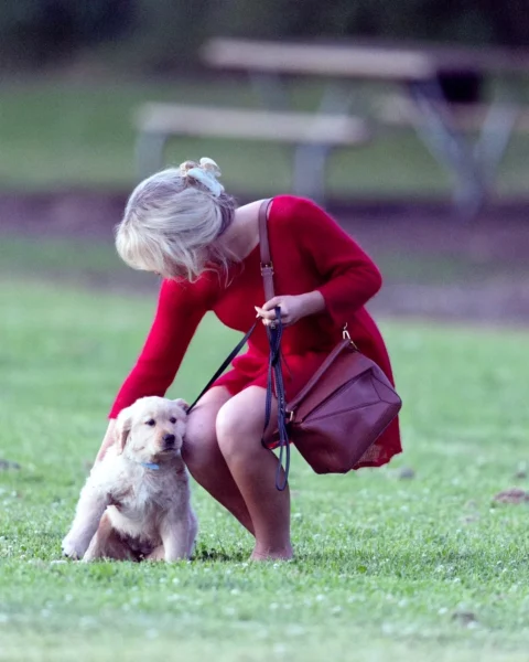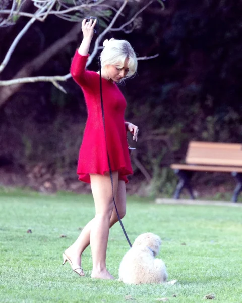 Sabrina sfotografowana podczas prywatnego spaceru w Los Angeles. Artystka została uchwycona w swobodnej, codziennej stylizacji — krótkiej czerwonej sukience i klasycznych dodatkach — prowadząc na smyczy szczeniaka rasy golden retriever. Zdjęcia nie są powiązane z żadnym wydarzeniem promocyjnym ani oficjalnym wyjściem i dokumentują wyłącznie codzienny, prywatny moment z życia artystki.