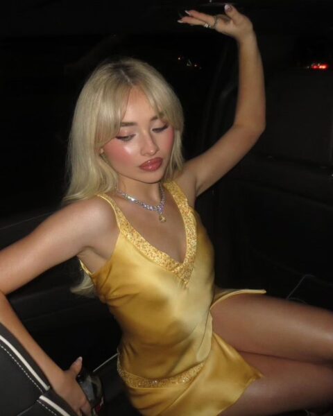 Kilka dni po Met Gali, 13 maja 2024 roku, w sieci zaczęły krążyć ujęcia z jednego z wieczornych przejazdów po Nowym Jorku — tych mniej oficjalnych, ale często najbardziej charakterystycznych dla całego „post-Met” klimatu. To właśnie wtedy Sabrina została sfotografowana wewnątrz samochodu, w stylizacji, która wyraźnie kontrastowała z wcześniejszymi, galowymi kreacjami.