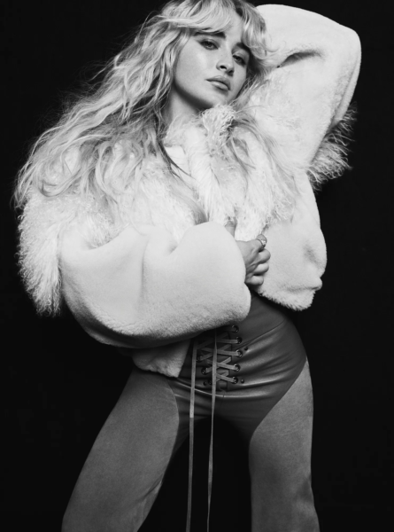 Jedno ujęcie – leżenie na dywanie w różowym komplecie – wygląda niemal jak kadr z filmu lat 60. Inne – czarno-białe w wąskim korytarzu – buduje napięcie i ruch, jakby została uchwycona w pół kroku, w pół ucieczki. Jest też kadr przy oknie z kwiatem w dłoni: miękki, melancholijny, bardzo „Vanity Fair” w swoim DNA.