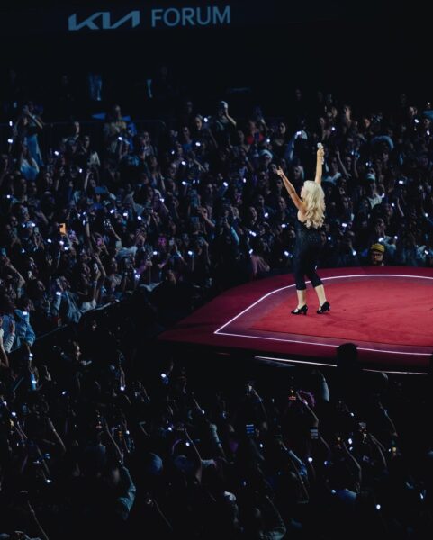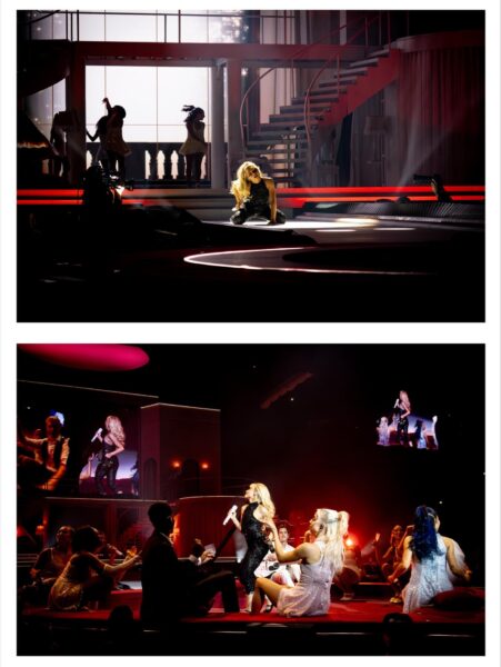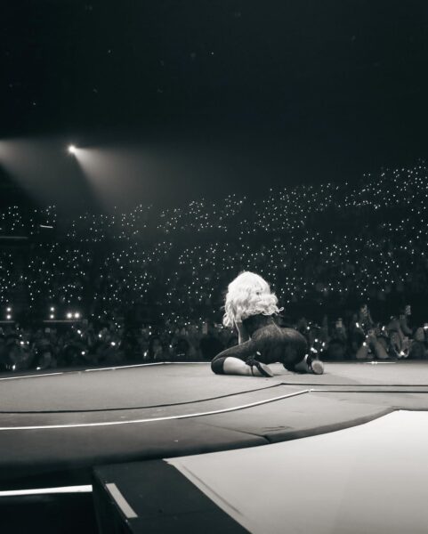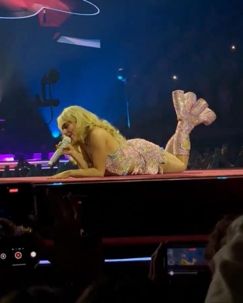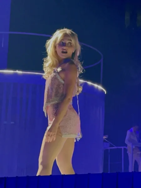 Stylizacje to znak rozpoznawczy tej ery: krótkie sceniczne kreacje, bieliźniane detale, retro inspiracje, błysk, koronki i formy, które balansują między dziewczęcością a pełną świadomością własnego wizerunku. Każdy look jest częścią większej narracji – spójnej z albumem, setlistą i sceniczną oprawą trasy.