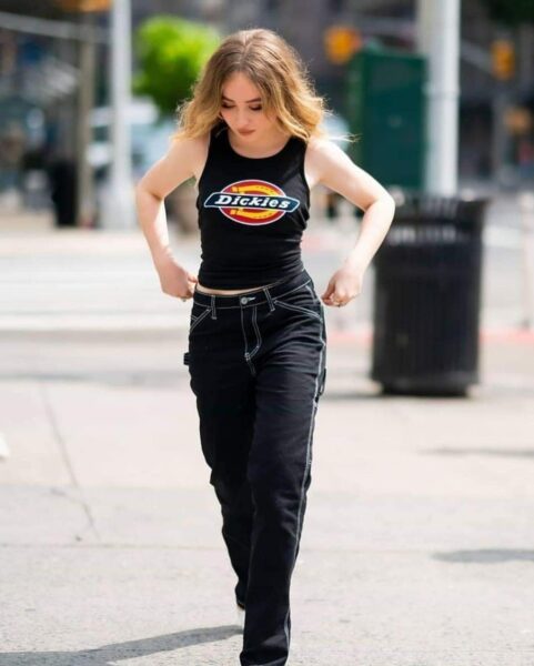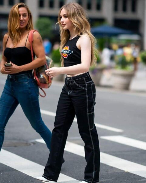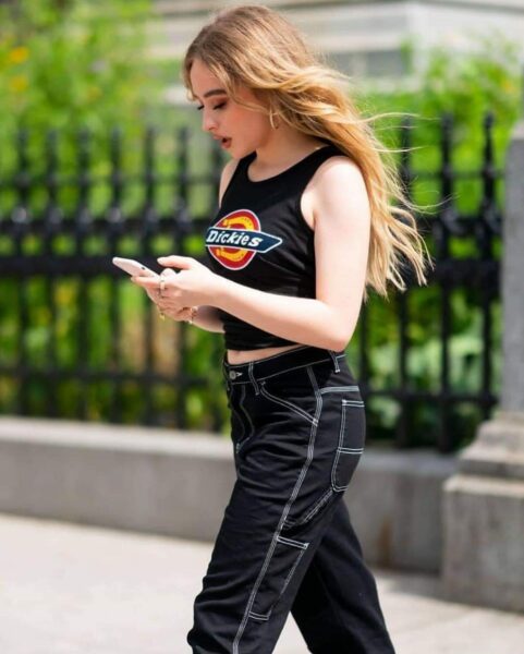 Sabrina pojawiła się w stylu „urban pop” — prostym, ale charakterystycznym dla jej wizerunku z tamtego okresu: